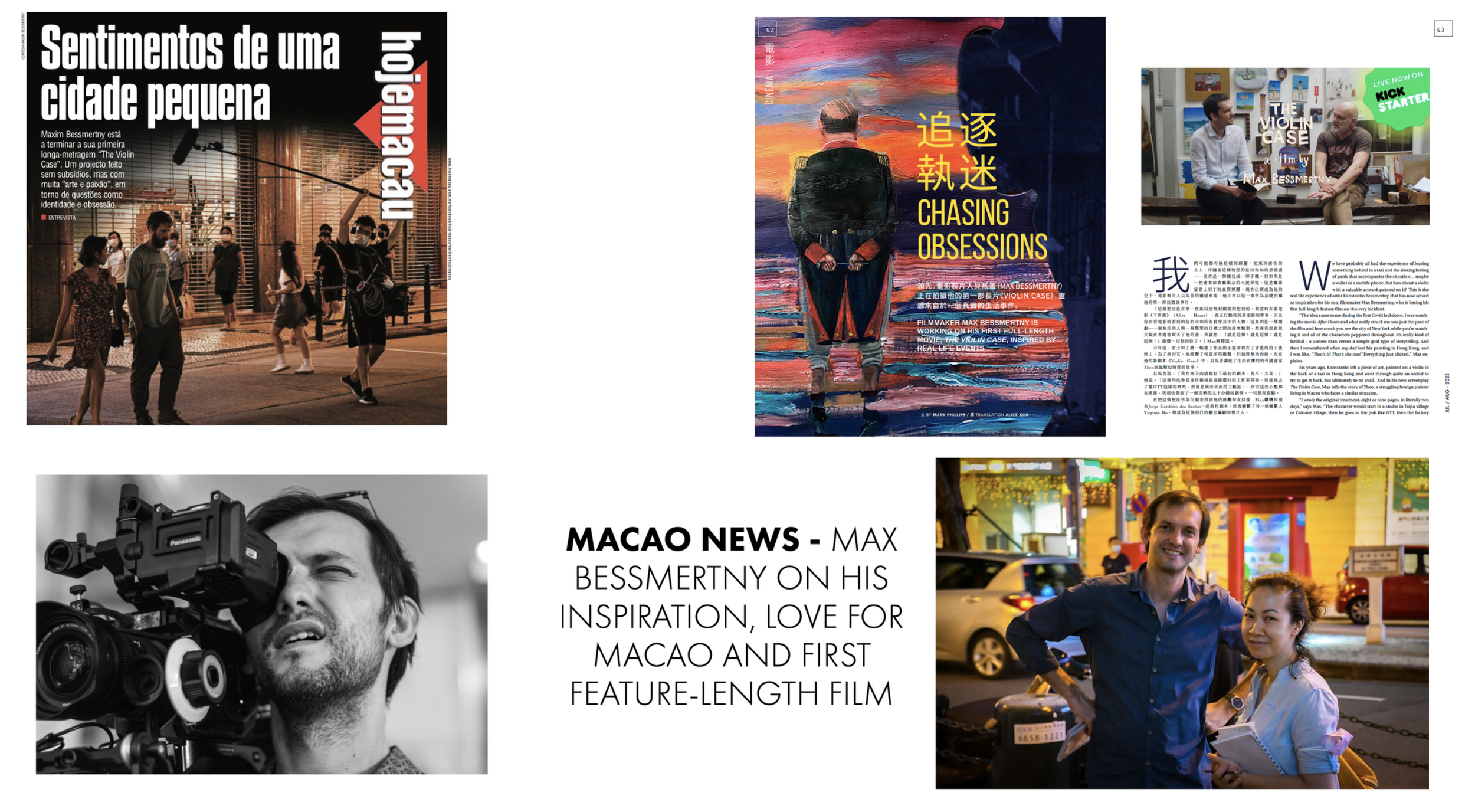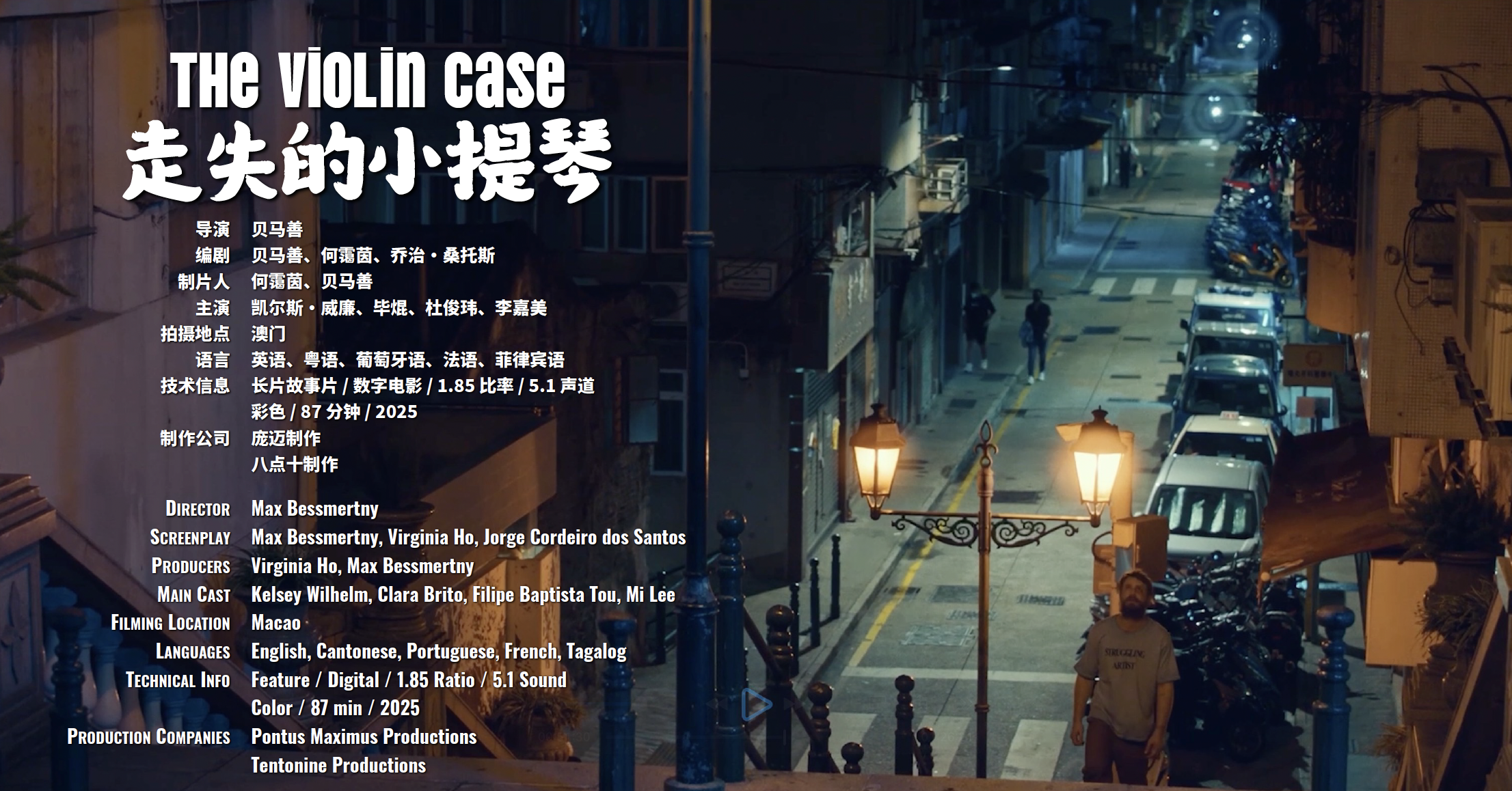 Max grew up in an artistic family with an accomplished painter father and a classical pianist mother, and surrounded by a multicultural environment with friends and family speaking Russian, Portuguese, English and a little bit of Cantonese. He was inspired to view the world in a unique way which is reflected in all his film projects. After graduating from New York University Tisch School of Arts Masters in Film, Max wrote, directed and produced the noir short “Tricycle Thief” which was the first ‘made in Macao’ film to World Premiere at the Toronto International Film Festival in 2014 and won the 2015 Kodak Gold Award. Other award-winning shorts include “Dirty Laundry” which premiered at We Are One (Tribeca x Youtube Film Festival in 2020) and “The Handover”, a 30-minute black-and-white comedy which won best local entry at the Macao International Short Film Festival. In 2022 Max embarked on his first feature film journey with “The Violin Case”, a story inspired by a true incident that happened to his father many years ago. The film was independently fundraised and shot during COVID when the whole world was under lockdown. It features an entirely local cast and crew. The storytelling style was inspired by the movie “After Hours”, which parallels with the hero in “The Violin Case” who goes on a journey around the city in desperate search of his lost artwork.