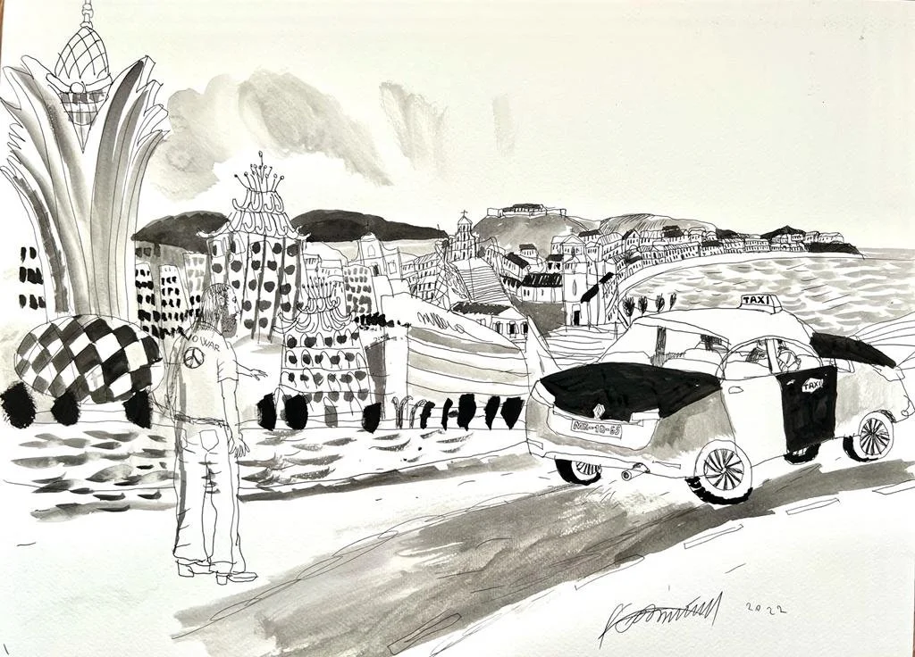 “The Violin Case” portrays a painter’s life, his hopes and dreams, his despair and struggles in a foreign city. It also shows the delicate and often antagonistic relationship between the artist and his agent, which embodies the conflict between art and capitalism.